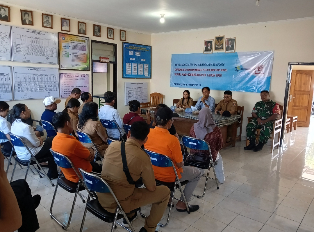 Kampung Baru – Hari ini Senin, 30 Maret 2026, Koperasi Kelurahan Merah Putih Kampung Baru mengadakan Rapat Anggota Tahunan (RAT) sebagai bentuk pertanggungjawaban pengurus kepada seluruh anggota koperasi. Kegiatan ini secara resmi dibuka oleh Ketua Koperasi Kelurahan Merah Putih Kampung Baru.